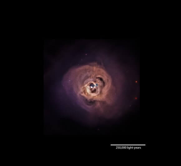 NASA has discovered a wave of hot gas larger than the Milky Way rolling through the Perseus galaxy cluster. This X-ray image is the result of 16 days of observing with the Chandra X-ray Observatory. The image was filtered to make details easier to see. Credits: NASA's Goddard Space Flight Center/Stephen Walker et al.[/caption]