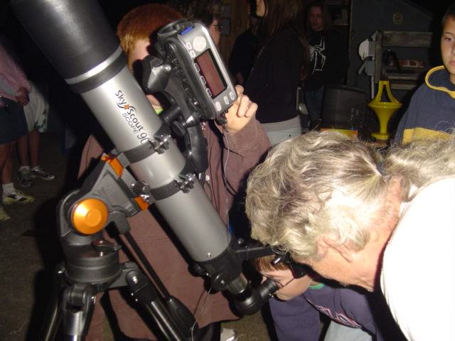 Does adding a dimension like the Celestron SkyScout Scope 90, the Celestron SkyScout, speakers and expansion cards really have an impact on both personal and public astronomy? You can see the results for yourself, but what you can't see is the most important of all. For those of us who practice astronomy, we often tease that we never know a face - but we know the voice in the dark. That night the voices in the dark were busy talking about star colors and names, pointing out constellations to each other and talking about distances and facts like young Carl Sagans. For some folks, this type of equipment might not seem right - a recorded voice taking place of a live astronomer - a telescope that utilizes GPS technology and point and shoot simplicity... But for a huge group of kids who embrace new technology?