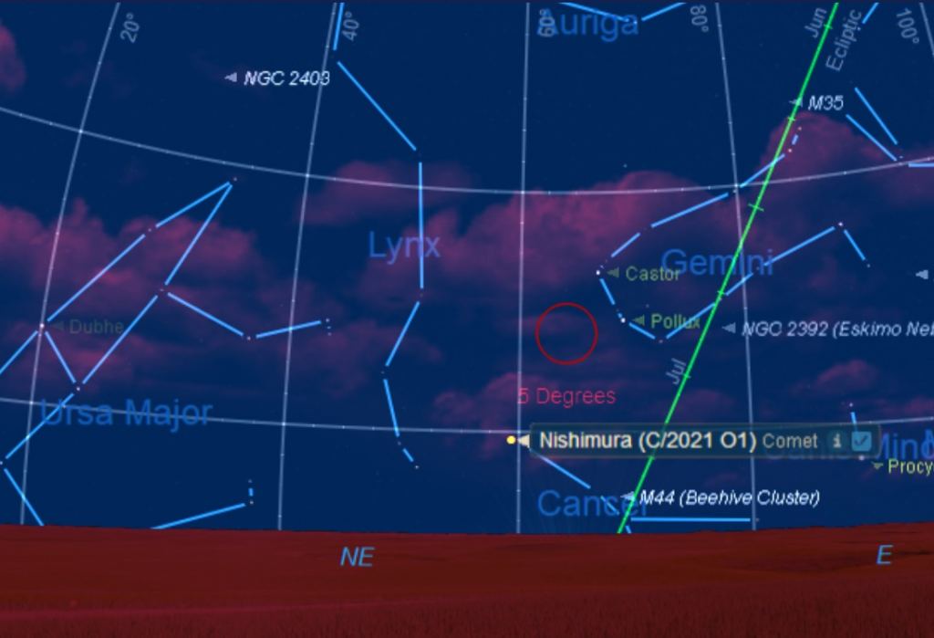 Here's the month-by-month celestial dates with destiny for the brief 2021 apparition of Comet O1 Nishimura:
