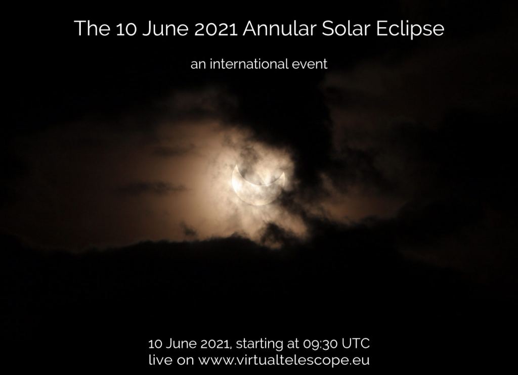 Views online – Clouded out, or simply live on the wrong side of the planet? The good people at the Virtual Telescope Project have got you covered, with a live broadcast of the annular eclipse starting on June 10thstarting at 9:30 UT/5:30 AM EDT.