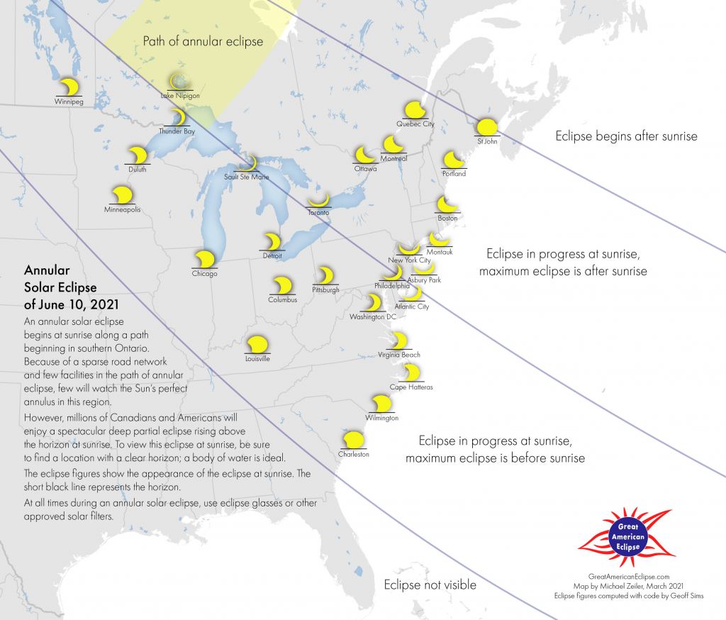 Got those solar glasses handy from 2017? If skies are clear on the morning of Thursday June 10th, you may once again find good use for them, as an annular 'ring-of-fire' eclipse crosses northeastern Canada into the Arctic.