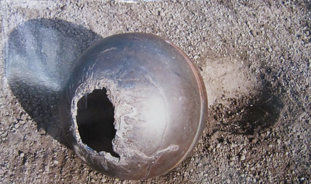 One of the Kosmos-482 fuel cylinders recovered from the Ashburton, New Zealand fall. Credit:Paul Maley.