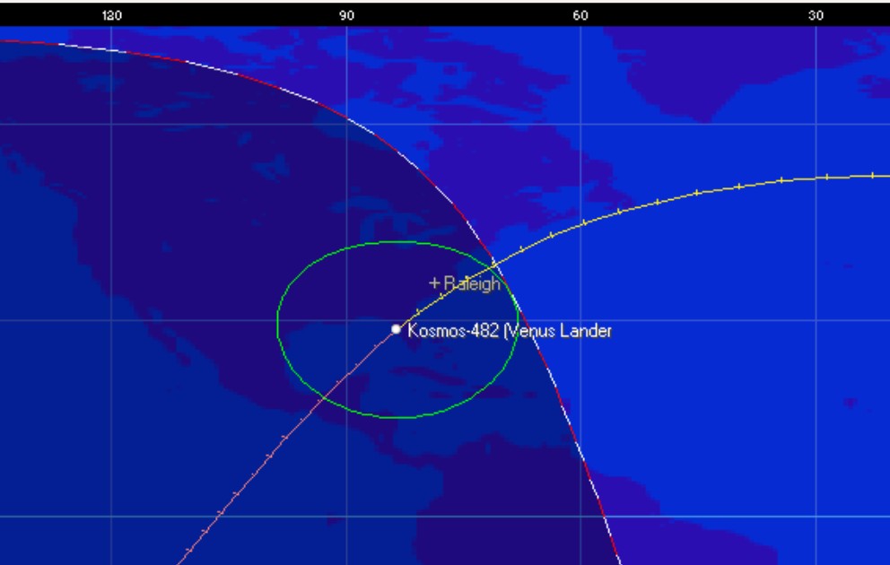 An orbital pass of Kosmos-482 on the morning on May 6th. Credit: Orbitron.