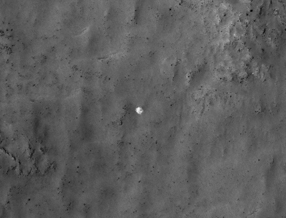 While following news about Mars and NASA's Curiosity rover, Russian citizen enthusiasts found four features in a five-year-old image from Mars Reconnaissance Orbiter that resemble four pieces of hardware from the Mars 3 mission: the parachute, heat shield, terminal retrorocket and lander. A follow-up image by the orbiter from last month shows the same features.