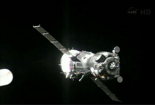 Soyuz Commander Fyodor Yurchikhin of the Russian Federal Space Agency (Roscosmos), NASA astronaut Karen Nyberg and European Space Agency (ESA) astronaut Luca Parmitano docked their Soyuz to the station's Rassvet module at 02:16 UTC on May 29 (10:16 p.m. EDT on May 28).