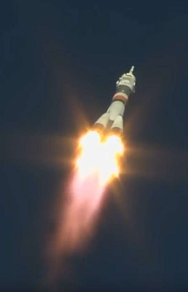in Kazakhstan at 2:40 pm. Just over a minute after the launch, the spacecraft's booster failed and the launch was aborted. Search and rescue teams went into action and retrieved the astronauts by helicopter.