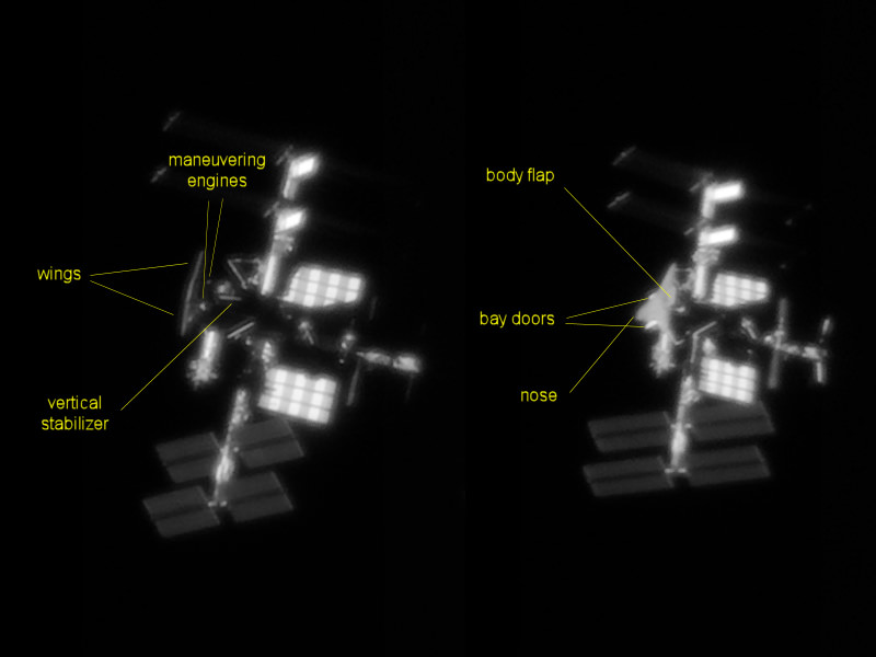 of the International Space Station and a docked space shuttle Discovery. He sent us a note that he had great "seeing" from Weimar, Germany on Monday evening, where he has set up shop in order to capture the orbiting spacecraft as many times as possible during the STS-133 mission. The detail is stunning, -- more detail even than