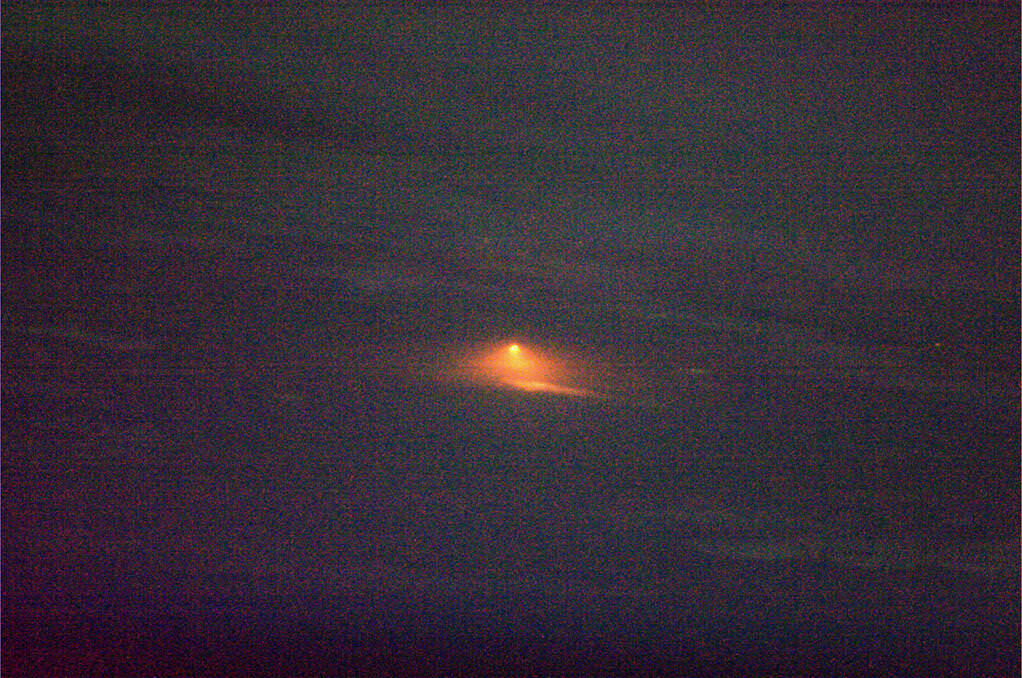 Just how much activity on Earth can be seen from orbit? In the dark of night, the Soyuz rocket launch on March 29/28, 2013 was bright enough to be seen by the International Space Station crew 350 km (220 miles) above. "Soyuz Rocket Launch - the moment of ignition, as-seen from their target, the Space Station," tweeted ISS commander