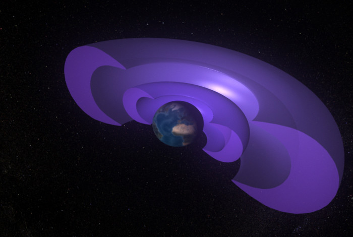Earth's outer radiation belt, or Van Allen belt, is situated around the equator, in a band about 34,500 km (22,000 miles) thick, starting at about 13,000 km (8,000 miles) above Earth and extending to about 48,000 km (30,000 miles). The belts are created by Earth's magnetic field, and it actually protects Earth from high-energy particles. The particles come primarily form the Sun, and are mostly deflected by the belts. But the belts trap some of those particles. Many satellites spend at least some of their time in that belt, where the trapped high-energy particles can behave unpredictably.