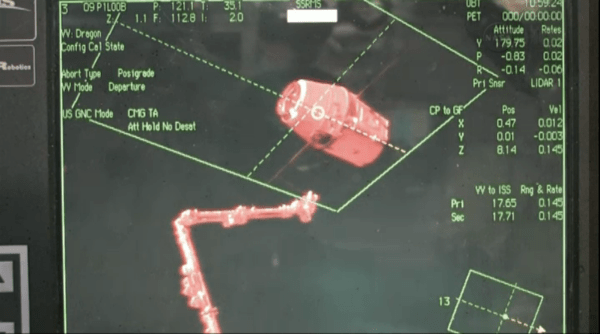 just 32 feet away from the station with the Canadarm2 on March 3. Ground controllers then took over Canadarm2 operations and berthed Dragon to the Harmony node.