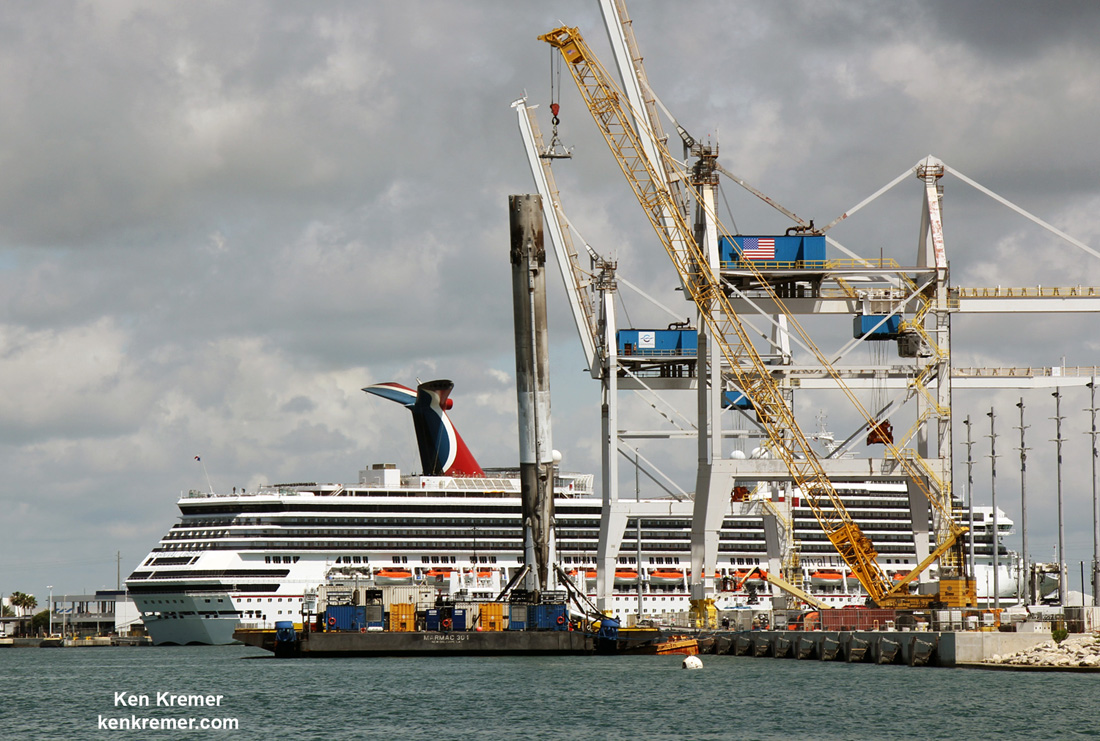 What a magnificent space sight to behold ! Cruise Ships and Recycled Rockets float side by side in Port Canaveral after recycled SpaceX Falcon 9 1st stage from BulgariaSat-1 launch from KSC on 23 June floats into port atop droneship on 29 June 2017. Credit: Ken Kremer/kenkremer.com[/caption]