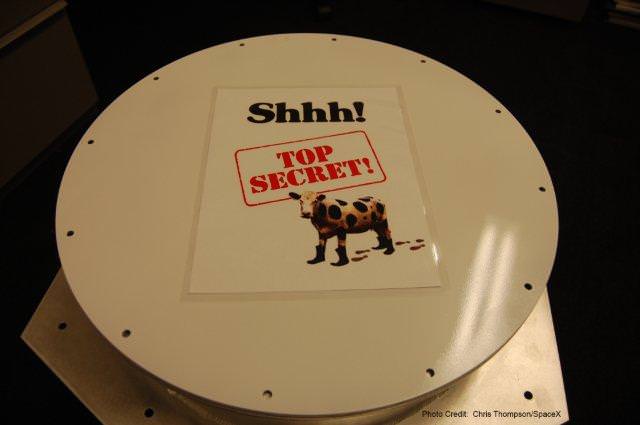 [caption id="attachment_81588" align="aligncenter" width="580" caption="Top Secret payload revealed. Photo Credit: Chris Thompson, SpaceX"]