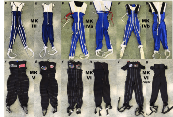 Studies using students as test subjects have helped with the development of the SkinSuit. After lying on the microgravity-simulating waterbed both with and without the SkinSuit, subjects were scanned with MRI's to test the SkinSuit's effectiveness. The suit has gone through several design revisions to make it more comfortable, wearable, and effective. It's now up to the Mark VI design.