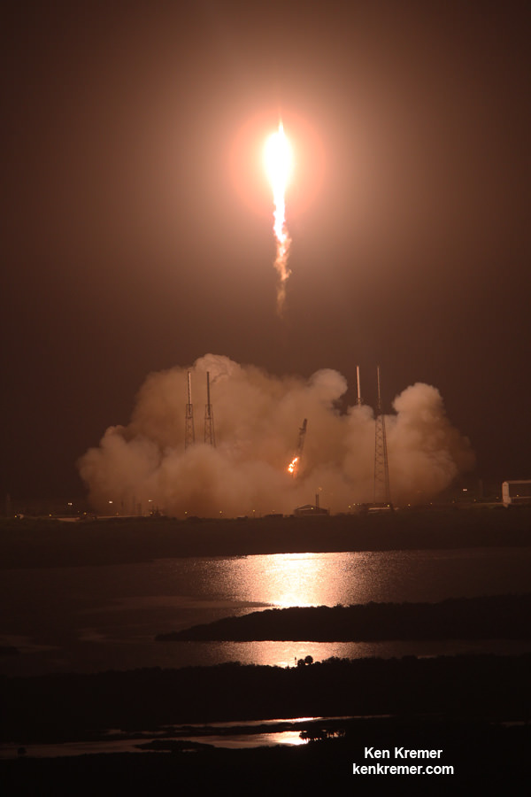 rocket blazed aloft on a spectacular middle of the night blastoff that turned night into day along the Florida Space coast today, Sept. 21, 2014, boosting a commercial cargo ship for NASA and loaded with 2.5 tons of ground breaking science experiments, 20 'mousetronauts' and critical supplies for the human crew residing aboard the International Space Station (ISS).