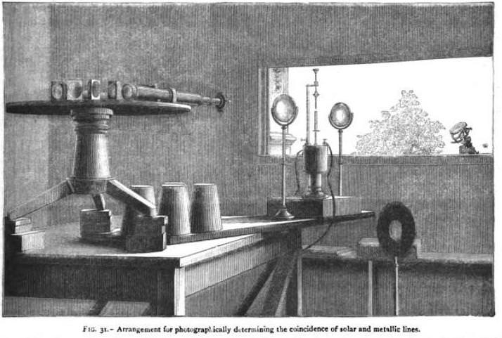 Presently, I've been reading a lot of very old papers and books in astronomy. The work I'm currently reading a portion of, is from 1881, and is a summary of all the findings of the year in all fields of Science. For those that aren't familiar with that time period in astronomy, the big thing was spectroscopy. It was only ~30 years earlier that chemists and astronomers had begun to work out methods by which to investigate spectra and with the newly developed tools in hand, astronomers were pointing them at anything they could find sufficiently bright to get a spectra. Obviously, this meant the first target was the Sun. This work provides an interesting snapshot at a developing era in astronomical history.