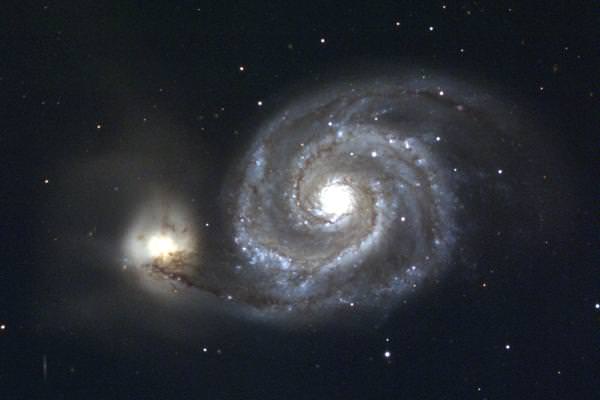 and has been simulated numerous times since then. Dobbs' team then introduced a point source to represent the smaller galaxy (NGC 5195) along the orbital parameters derived by previous simulations of