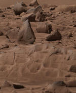 Before moving on across the plains of Meridiani, though, Opportunity will complete an investigation it has begun of Bounce Rock. The rock is unlike any seen on Mars before, said Dr. Jim Bell, lead scientist for the rovers' panoramic cameras. "There are some shiny surfaces on this rock," he said, describing them as "almost mirrorlike."