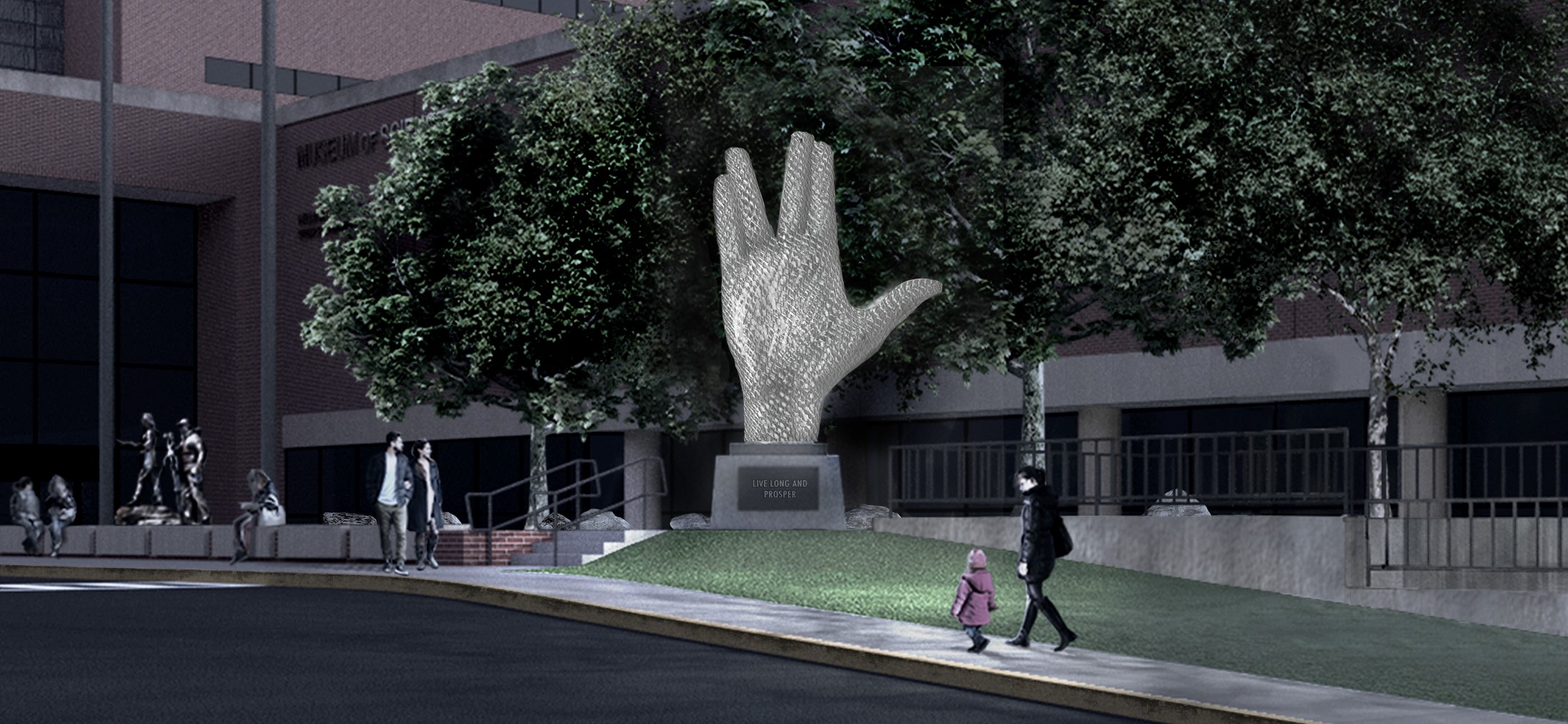 Clarification for March 17: An earlier version of this report mischaracterized the roles of the people behind the Leonard Nimoy Memorial project. The sculpture was designed and created by David Phillips, and Tom Stocker is the founder of the campaign to establish the memorial. As founder, Stocker began the GoFundMe grassroots fundraiser for the project and helped bring about a consensus on the concept of the Vulcan raised-hand salute, which Phillips made use of in his design.