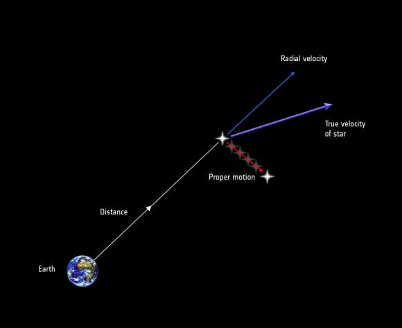 Between the proper motion and redshift, you can get a precise calculation for the exact path a star is moving in the sky.