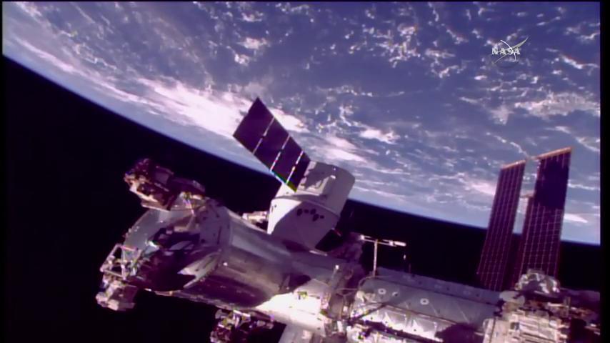 Ground controllers then carried out the remainder of the work to berth the SpaceX Dragon cargo spacecraft at the Earth facing port on the Harmony module of the International Space Station at 9:07 a.m. EDT.