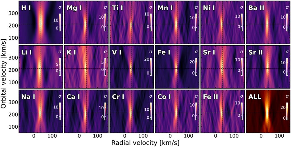 The study published in Astronomy and Astrophysics is also based on data from the VLT and ESPRESSO. It uncovered more details of Tylos' atmosphere, including its chemistry. "The transmission spectrum of WASP-121 b has been extensively studied using the cross-correlation technique, resulting in detections and confirmations for various atoms and ions, including H I, Mg I, Ca I, V I, Cr I, Fe I, Ni I, Fe II, Ca II, and K I, Ba II," the authors write. "We confirm all these detections and additionally report detections for Ti I, Mn I, Co I Sr I, and Sr II."