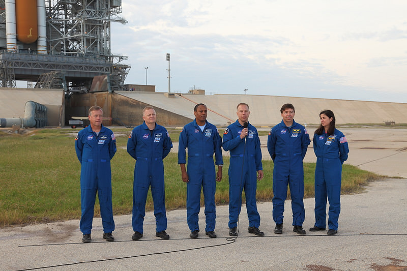 The crew of STS-133 consists of Lindsey, Pilot Eric Boe and Mission Specialists, Michael Barratt, Tim Kopra, Alvin Drew and Nicole Stott. The crew is comprised entirely of space flight veterans.