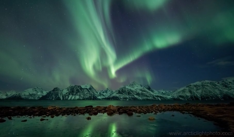 . "In the film I have tried to show the slower majestic dancing lights, as well as the more faster, dramatic and abstract shows, and finally the auroras in combination with city lights and urban elements."