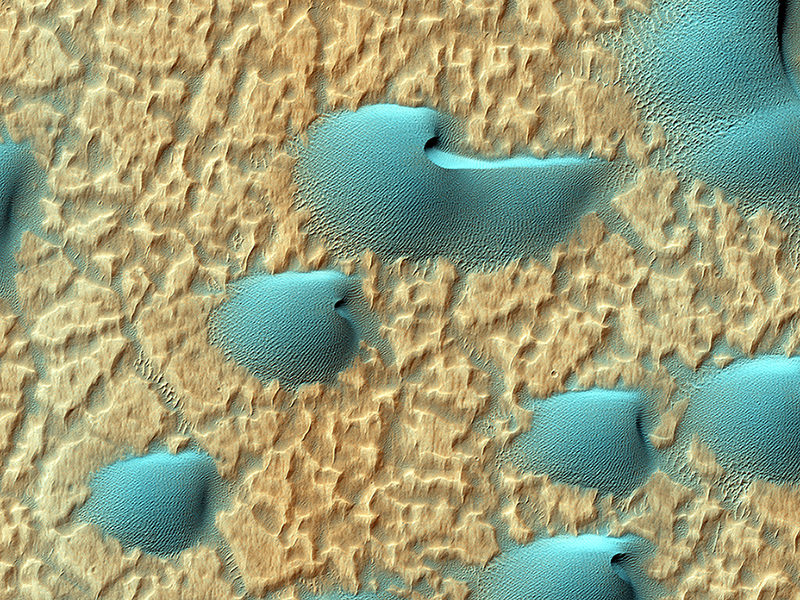 "When there are perfect conditions for producing sand dunes -- steady wind in one direction and just enough sand -- barchan sand dunes form. The word 'barchan' is a Russian term because this type of dune was first described in the desert regions of Turkistan."