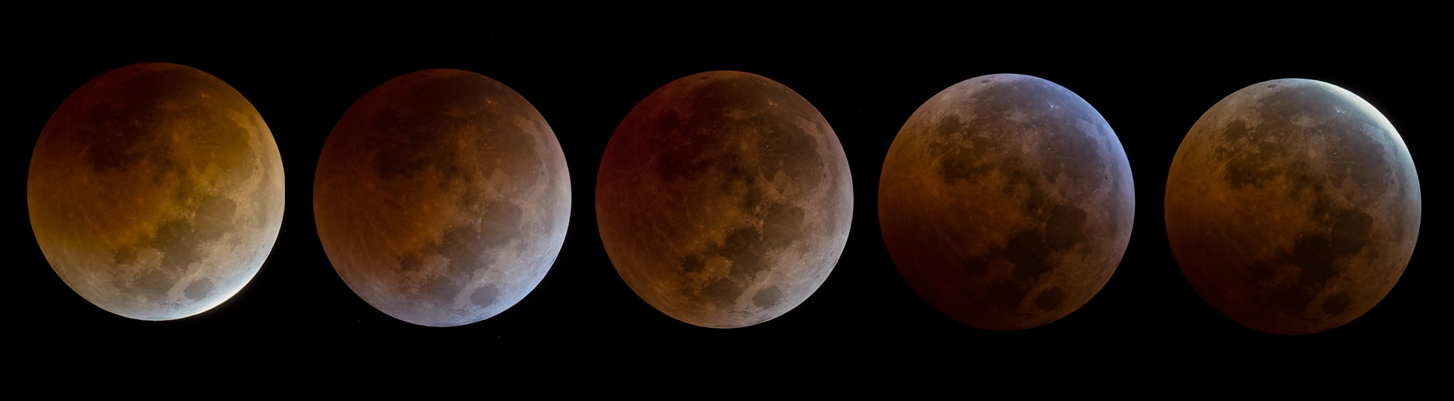 Our lead image, a composite from University of Arizona Professor Eliot Herman shows a series of views throughout the eclipse. "This Lunar eclipse had soft gradations of color that was quite beautiful," Herman said on Flickr. "This series of photos begins just before totality and ends just after totality. All images are 15 images stacked captured with a Questar telescope, Baader UV/IR filter, and a Nikon Z7II."