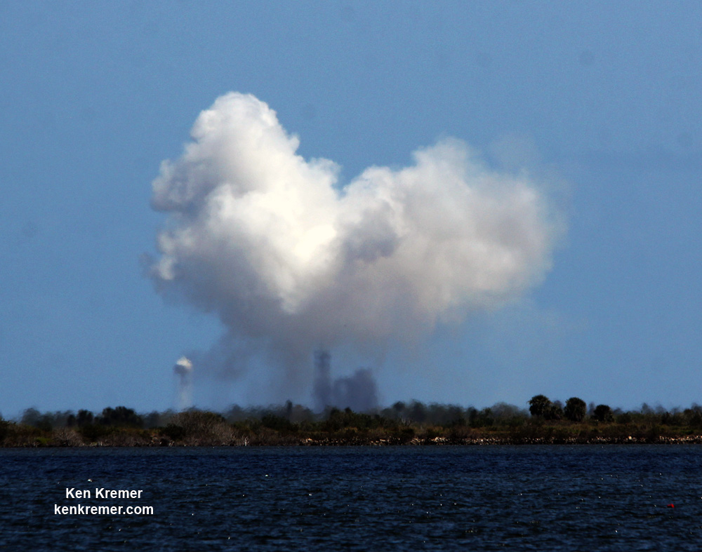 The brief engine test lasting approximately three seconds took place at 2 p.m. today, Monday March 27, with the sudden eruption of smoke and ash rushing into the air over historic pad 39A on NASA's Kennedy Space Center during a picture perfect sunny afternoon - as I witnessed from Space View Park in Titusville, FL.