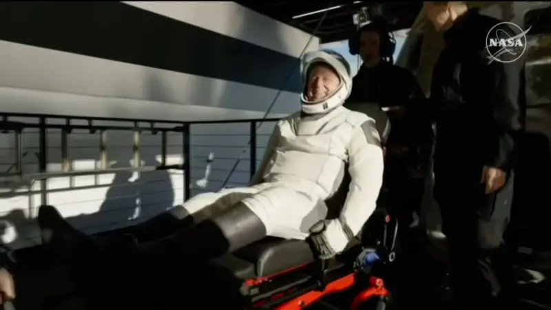 Barry "Butch" Wilmore leaves the Dragon capsule (Credit : NASA)