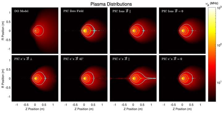 After that initial contact, the following simulation focuses on what happens next to the molecules. In particular, it tries to simulate where they fly to, at what speed when / if they become plasmatized. The third simulation uses a virtual form of radar to study the plasma to emulate what real-world radar systems would see.