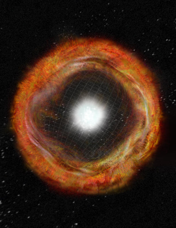 [/caption] When the nuclear fusion reactions at the cores of very massive stars no longer can provide the energy needed to hold the core up against the weight of the rest of the star, the core collapses catastrophically into a superdense neutron star or black hole. The rest of the star's material is blasted into space in a supernova explosion. For the past decade or so, astronomers have identified one particular type of such a "core-collapse supernova" as the cause of one kind of gamma-ray burst.