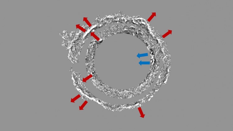 This is very unusual for supernova remnants. Astronomers have observed and modelled SNRs extensively. "The inward motion of the reverse shock in the western part does not agree with the evolutionary model for an SNR expanding into a dense wind at less than 1000 yr," the authors write. The authors say there are a couple of explanations for the inward motion of the reverse shock.