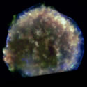 This Chandra image reveals fascinating details of the turbulent debris created by a supernova explosion that was observed by the Danish astronomer Tycho Brahe in the year 1572. The colors show different X-ray energies, with red, green, and blue representing low, medium and high energies, respectively. The image is cut off at the bottom because the southernmost region of the remnant fell outside the field of view of the detector.