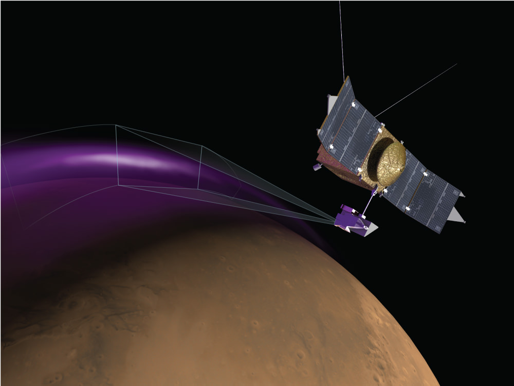 Detected by MAVEN's Imaging Ultraviolet Spectrograph (IUVS) instrument over five days before Dec. 25, 2014, the ultraviolet auroras have been nicknamed Mars' "Christmas lights." They were observed across the planet's mid-northern latitudes and are the result of Mars' atmosphere interacting directly with the solar wind.