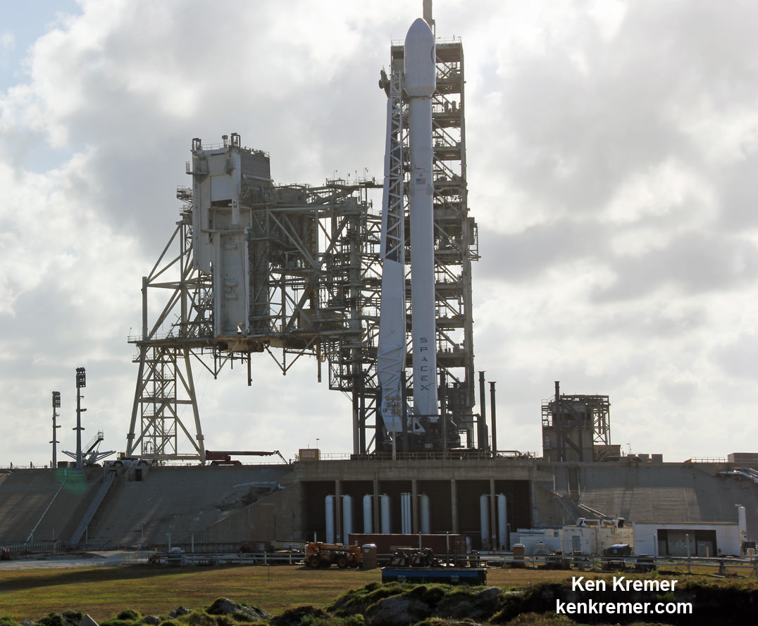 SpaceX Falcon 9 rocket carrying classified NROL-76 surveillance satellite for the National Reconnaissance Office stands raised erect poised for sunrise liftoff from Launch Complex 39A on 30 April 2017 from NASA's Kennedy Space Center in Florida. Credit: Ken Kremer/Kenkremer.com[/caption]