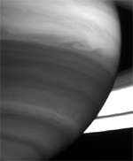 Image credit: NASA/JPL/Space Science Institute Saturn?s bright equatorial band displays an exquisite swirl near the planet?s eastern limb. This image was taken with the narrow angle camera on May 18, 2004, from a distance of 23.4 million kilometers (14.5 million miles) from Saturn through a filter sensitive to absorption and scattering of sunlight by methane gas in the infrared (centered at 889 nanometers). The image scale is 139 kilometers (86 miles) per pixel. No contrast enhancement has been performed on this image.
