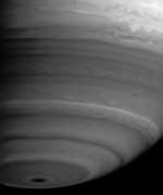Image credit: NASA/JPL/Space Science Institute Dramatic details are visible in the swirling turbulent bands of clouds in Saturn?s atmosphere. Particularly noteworthy is the disturbed equatorial region. The image was taken with the narrow angle camera in spectral region where methane strongly absorbs light on May 10, 2004 at a distance of 27.2 million kilometers (16.9 million miles) from Saturn. Image scale is 162 kilometers (101 miles) per pixel. Contrast in the image was enhanced to aid visibility.