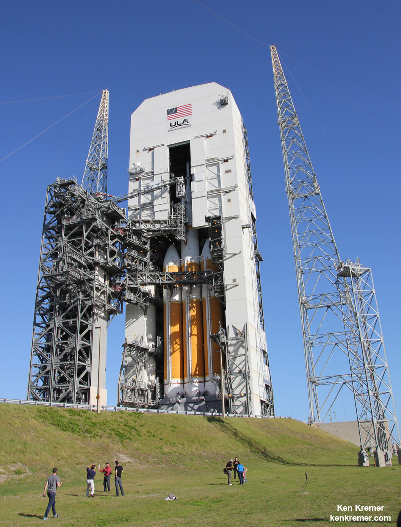 Today, Dec 3, the media including myself visited Orion and its Delta IV Heavy booster rocket for an up close look at its launch pad along the Florida space coast and set up our sound activated launch pad cameras. Enjoy my photo gallery herein.