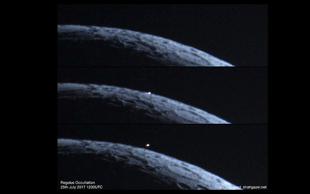 The Moon occults Regulus on July 25th, 2017. The Moon also occulted the star shortly after the August 21st total solar eclipse. Credit and copyright: @Shahgazer (