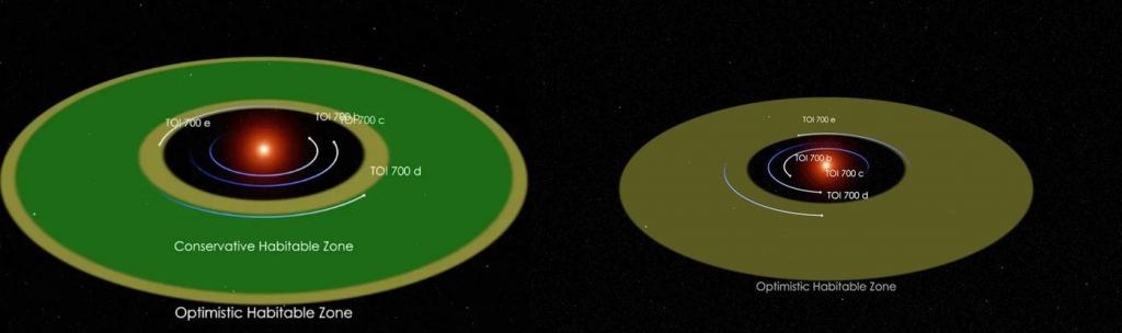 These are intriguing hints, and since TOI is relatively quiet, it can make a good comparison with another well-known red dwarf system with multiple planets in its HZ. The TRAPPIST-1 system has four planets in its potentially habitable zone, but the TRAPPIST-1 star is rambunctious compared to TOI-700.