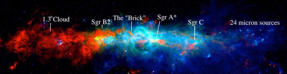 The area of the galaxy they studied, known as the " central molecular zone " (CMZ) spans the 1600 light years closest to the supermassive black hole at the center of the Milky Way. That is approximately 16 times closer to the galactic center than our own sun is. Almost everything about this part of the galaxy is more "intense" than the further out reaches. The molecular gas clouds that comprise it have higher magnetic fields, radiation, and even pressures and temperatures. They also make up an estimated 60 million solar masses in weight.