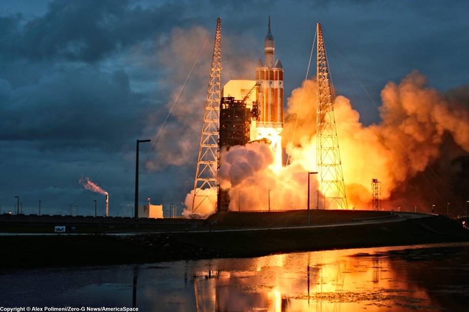 Orion's inaugural launch on Dec. 5, 2014 atop United Launch Alliance Delta 4 Heavy rocket at Space Launch Complex 37 (SLC-37) at Cape Canaveral Air Force Station, Florida at 7:05 a.m. Credit: Alex Polimeni/Zero-G News/AmericaSpace Expanded with a growing gallery![/caption]