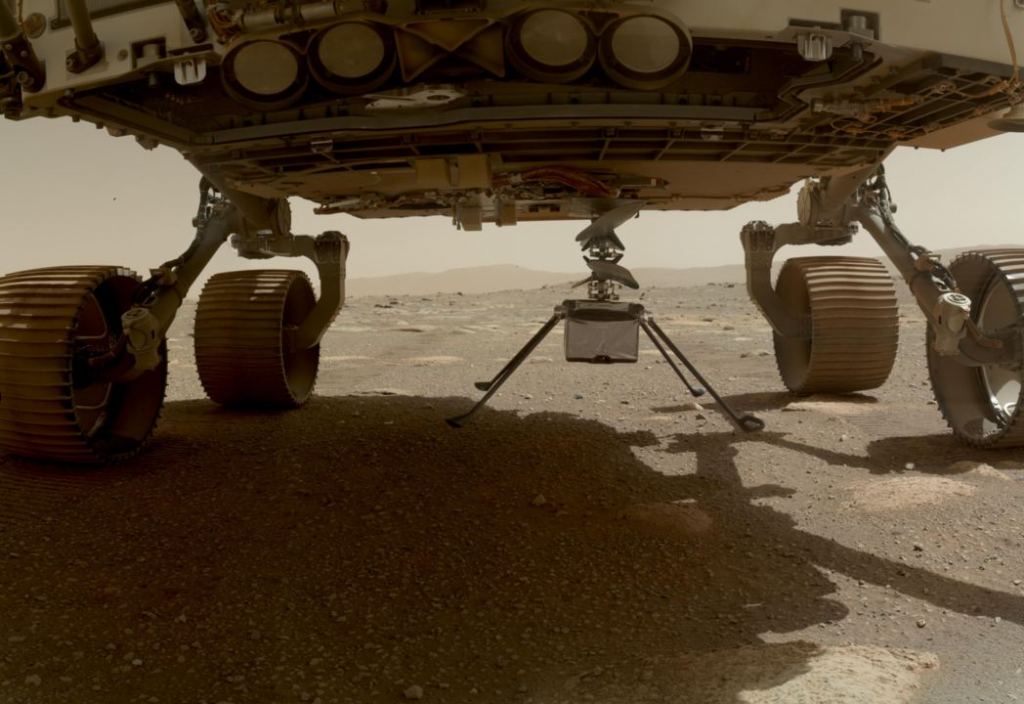 When NASA's Perseverance rover landed in Mars' Jezero crater, it had a passenger secured to its belly: a small rotorcraft named Ingenuity. It was the first powered, controlled extraterrestrial flight by an aircraft. (The first unpowered flight was a Soviet balloon flight on Venus as part of the Vega 1 mission in 1985.)