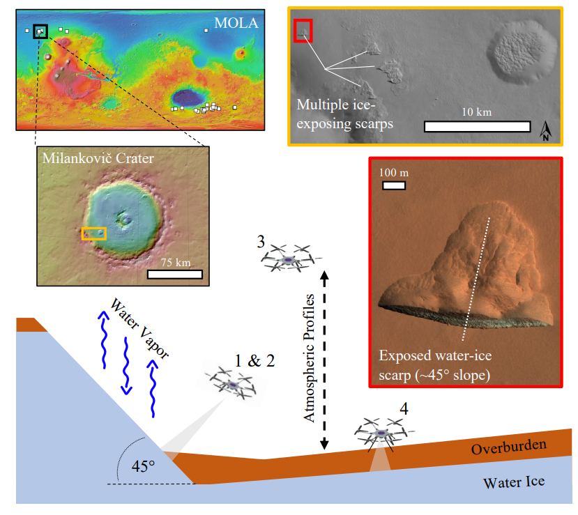 The white paper also identifies science payloads and specific locations where the MSH could meet the scientific objectives. These are broken down into three mission concepts, with each one having different instruments. They are Clays and Astrobiology, Ice-Exposing Scarps, and Crustal Magnetism. These three objectives are well-known to Universe Today readers.