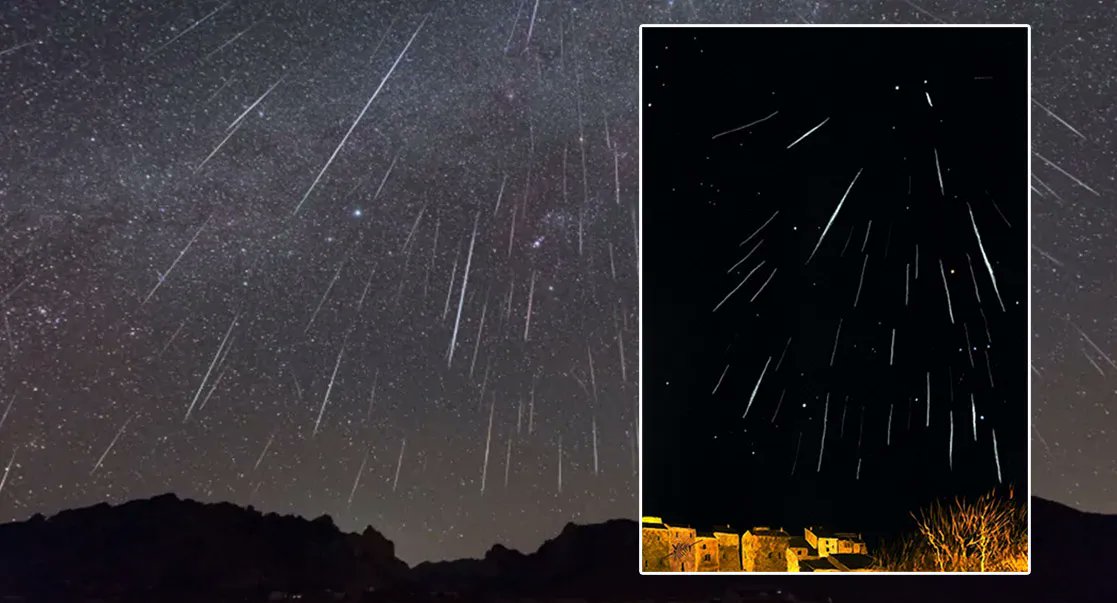 Time lapse of the Geminid meteor shower in Arizona and an inset of a time-lapse in France.