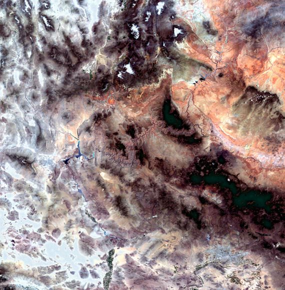 [/caption] The Grand Canyon is an awesome sight on Earth -- one of the seven natural wonders of the world – and it looks breathtaking from space, too. This image was taken by the Envisat satellite, showing canyon walls, rock structures, old lava flows, buttes, ravines, stair-step topography in hues of pink, violet and gray.