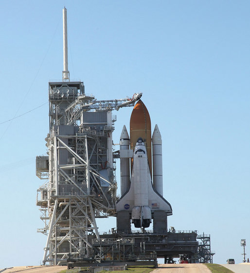 [caption id="attachment_64328" align="aligncenter" width="345" caption="Atlantis on the launchpad on May 13, 2010, after RSS rollback. Image credit: Alan Walters (awaltersphoto.com) for Universe Today"]