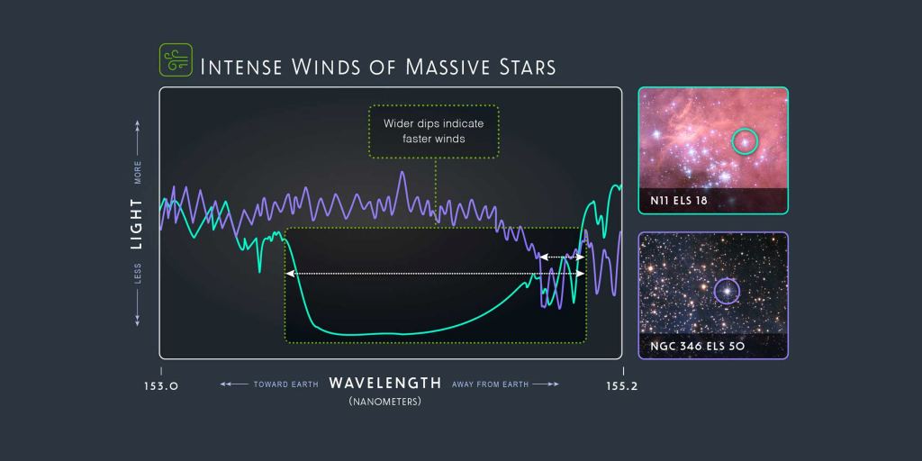 Spectra can tell astronomers more than just the metallicity of the stars. They can also reveal the powerful stellar winds coming from the hot blue stars.